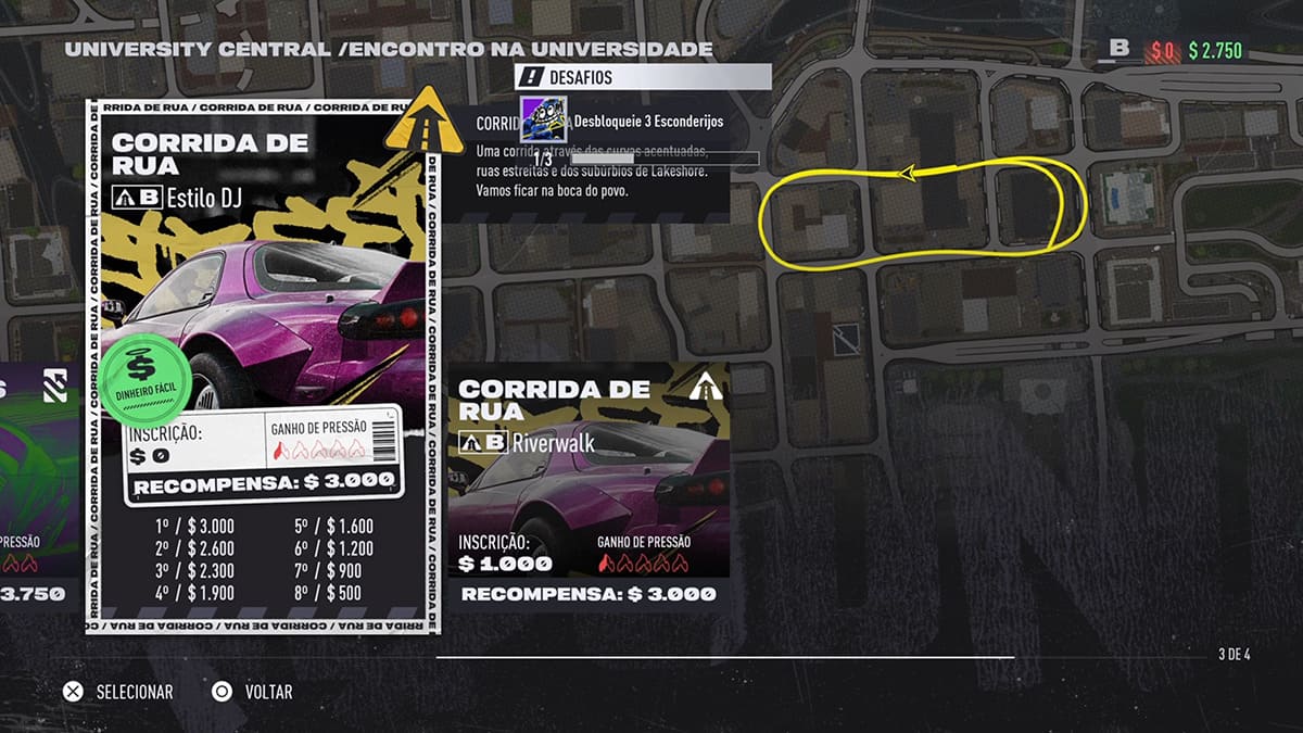A primeira impressão que tive é a de que não seria possível ter um carro bom suficiente para competir na primeira semana de desafios. Mas isso nem sequer chegou a ser um problema pois o jogo proporciona corridas que oferecem uma quantia razoável para começo do gameplay. Antes das corridas o jogo dá a oportunidade de criar uma rivalidade durante cada evento, fazendo o jogador bater uma aposta com algum outro corredor. De início é até interessante, pois é um dinheiro extra que o jogador faz, mas ao longo do tempo esse valor da aposta vai ficando não tão atraente, já que ele passa a ser desproporcional ao que se ganha ao vencer as corridas.
