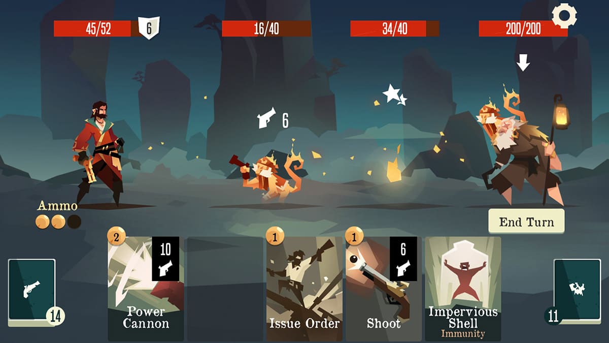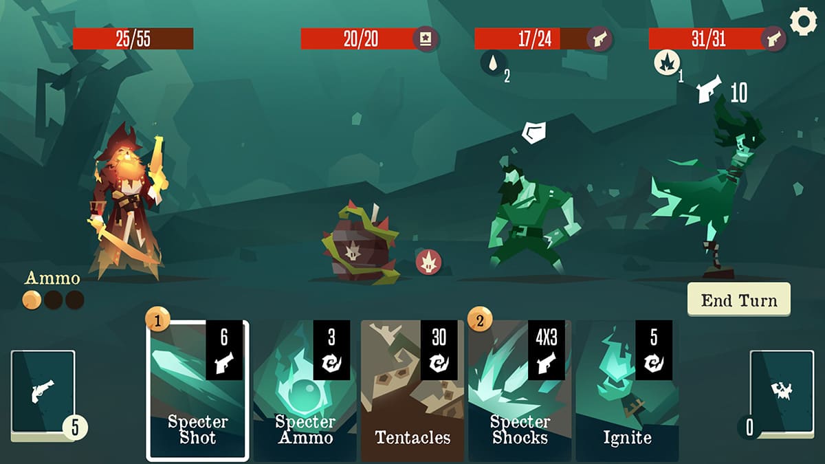 O jogo oferece 3 modos de jogo e 16 heróis com habilidades únicas e baralhos pré-montados. São mais de 500 cartas e 160 relíquias para colecionar! Jogue suas cartas e gerencie sua munição para soltar o melhor combo. Derrote 150 bandidos e mais de 50 chefes únicos em um sistema de combate baseado em turnos.