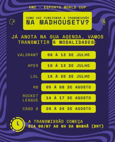 Para Jaime Pádua, CEO da organização, a participação na EWC é mais que uma competição. “A Esports World Cup é a Copa do Mundo dos esports. São sete semanas intensas e estamos prontos para dar nosso melhor”, afirmou.