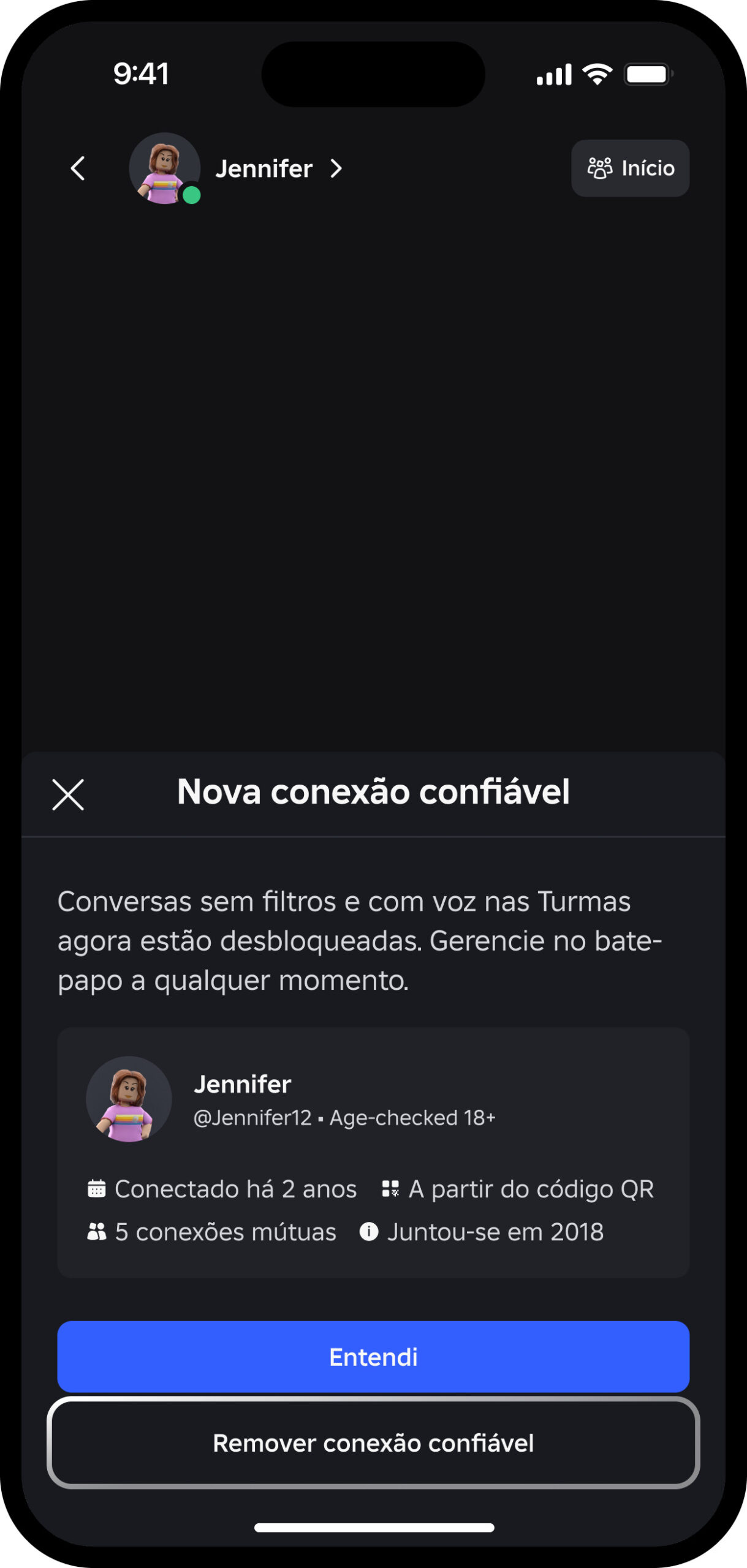 Os jogadores maiores de 13 anos agora podem conversar mais livremente com pessoas que já conhecem na vida real, desde que tenham feito a verificação por meio da Estimativa de Idade. Para adicionar uma Conexão Confiável, é possível usar QR Code ou até importar contatos.