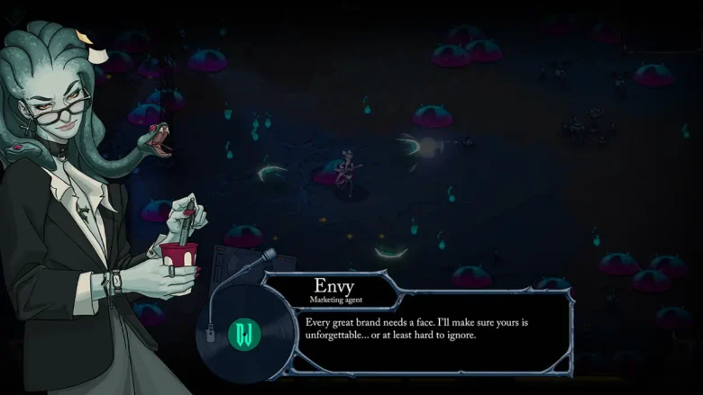 Equipado com instrumentos possuídos, cada run em Devil Jam se torna uma jam session única: os instrumentos tocam automaticamente no ritmo da música e se transformam em armas mortais contra hordas de inimigos sombrios, estrelas do rock rivais e groupies fanáticas.