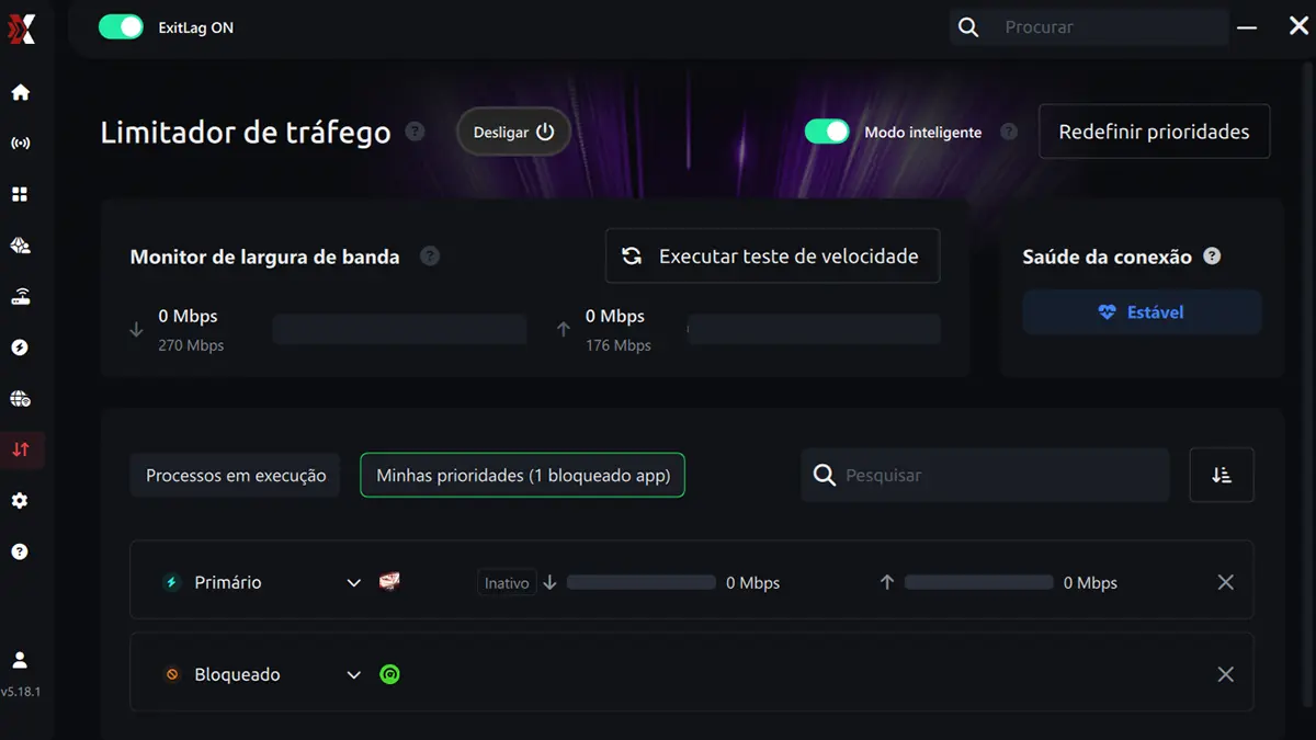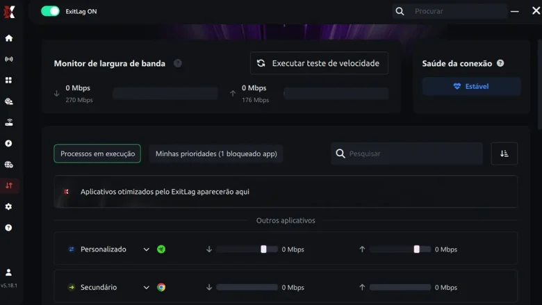 A nova versão reforça a priorização automática como elemento central, oferecendo uma vantagem clara para os assinantes da ExitLag. Com o Limitador de Tráfego, qualquer jogo ou aplicativo otimizado pela plataforma passa a operar com prioridade máxima, sendo ideal para jogadores competitivos e atletas de Esports.