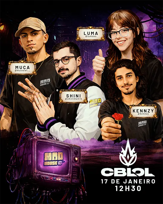 A MadHouse TV anunciou a ampliação de sua grade de transmissões e confirmou que passará a exibir o Campeonato Brasileiro de League of Legends, o CBLOL. Com a novidade, o canal passa a reunir em sua programação dois dos principais pilares do cenário competitivo atual, ao lado do já consolidado Counter-Strike 2.