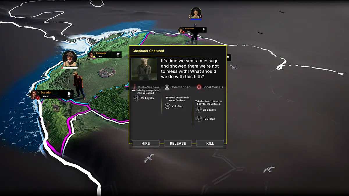 Ambientado no turbulento cenário do narcotráfico colombiano, o game aposta em decisões estratégicas e gestão cuidadosa para simular a ascensão e possível queda de um cartel. Em vez de focar na violência explícita, a proposta destaca planejamento, influência política e controle territorial como pilares centrais da experiência.