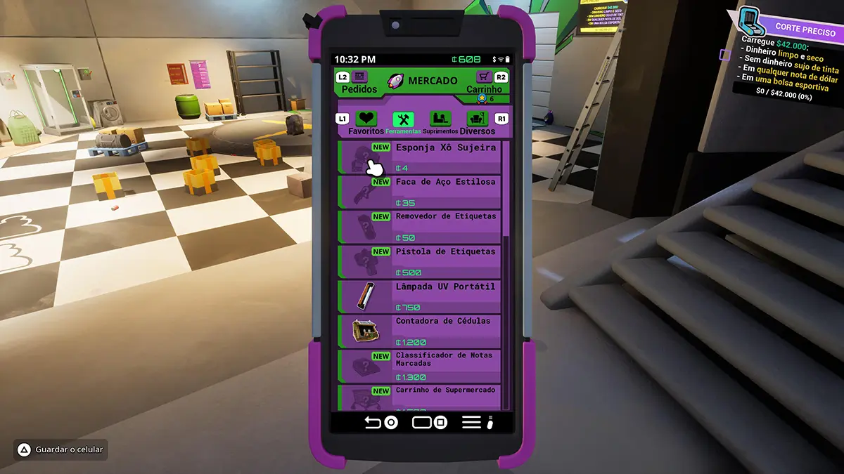 - Personalizar o ambiente: decorações para o laboratório clandestino e itens interativos como o “Bufunfabol”, um minigame de basquete jogado com maços de notas.