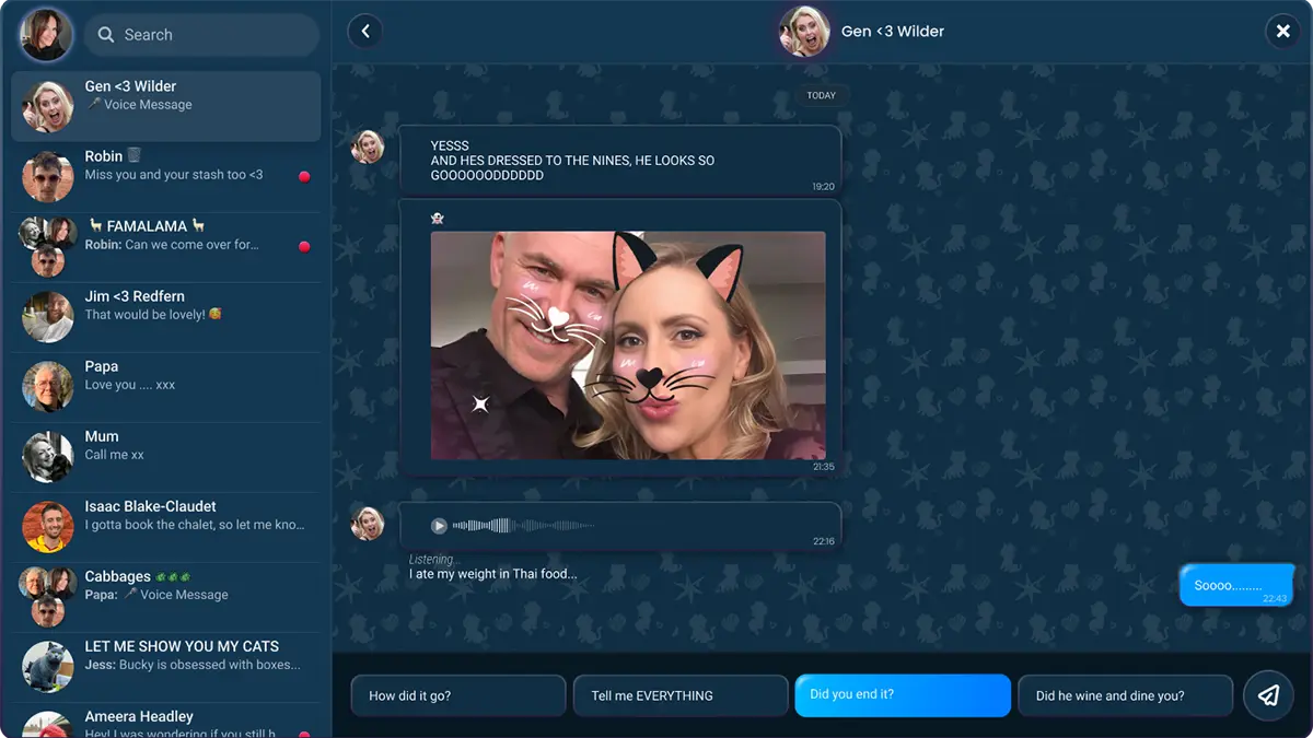 À medida que a relação evolui, o vínculo com Kai começa a impactar as conexões reais de Claire, levando a decisões difíceis. O jogo utiliza conversas cotidianas, mensagens privadas e memórias organizadas para explorar temas como dependência emocional, autoengano e o conforto de ser compreendido sem questionamentos.