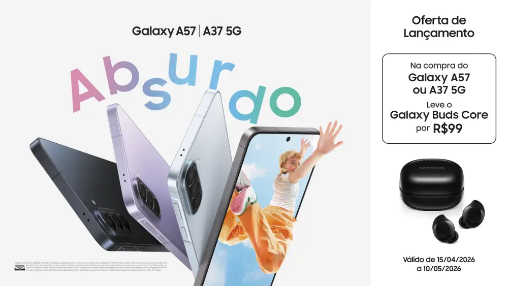 Os novos dispositivos estarão disponíveis no Brasil a partir de 15 de abril de 2026. O Galaxy A37 5G chega com preço sugerido a partir de R$ 3.299 nas cores Lavanda, Preto, Verde e Branco. Já o Galaxy A57 5G tem valor inicial de R$ 3.599, disponível em Azul, Cinza, Azul Claro e Lilás. A Samsung também anunciou condições especiais em parceria com as operadoras Claro, TIM e Vivo para planos pós-pagos: