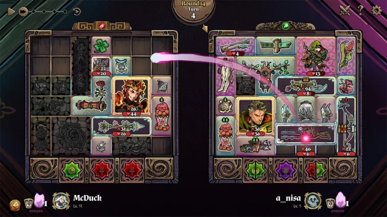 Turnbound é construído em torno da experimentação e da maestria. Os jogadores combinam heróis, itens e tiles para criar builds que evoluem ao longo de cada partida, muitas vezes de maneiras inesperadas.