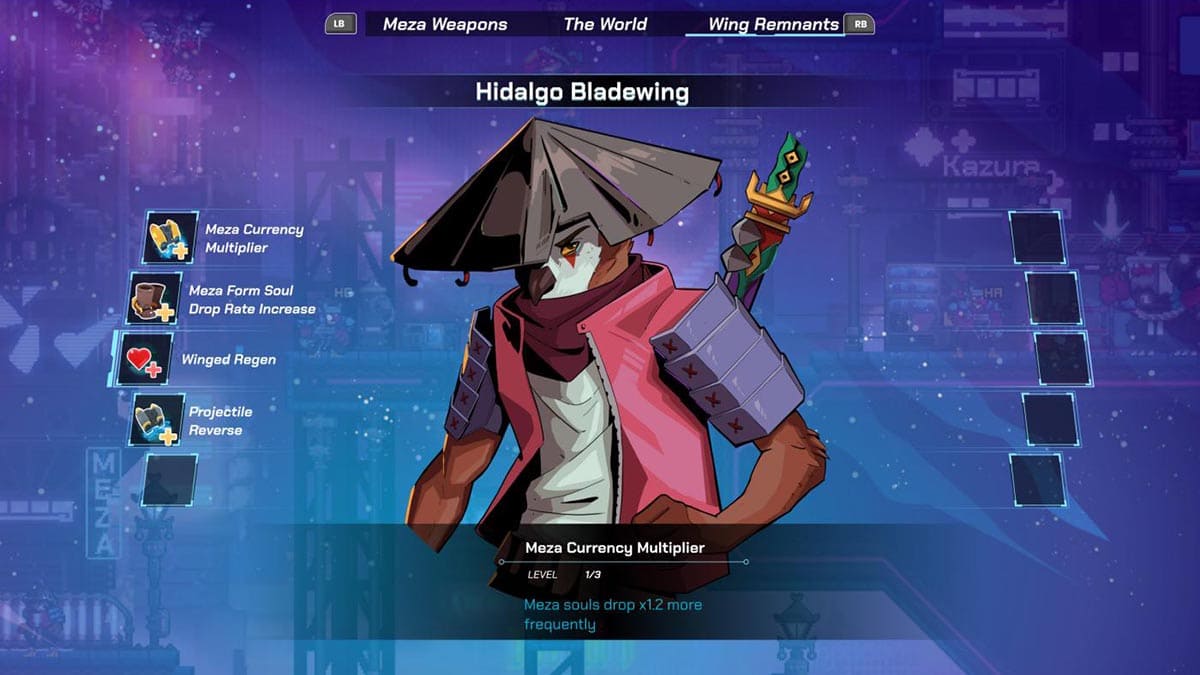No papel de Hidalgo Bladewing, um Shinobi Coruja, os jogadores devem abrir caminho através de oito zonas roguelite distintas. A jornada conta com o auxílio de uma espada companheira caótica e de temperamento forte. O cenário é inspirado em ambientes neo-japoneses vibrantes, acompanhado por uma trilha sonora synthwave ao estilo dos anos 90.