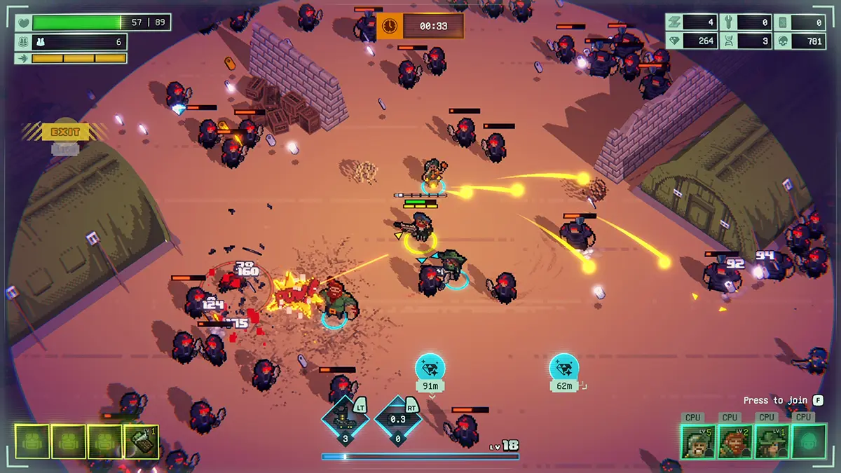 • Gameplay combina squad-building, roguelike e ação twin-stick