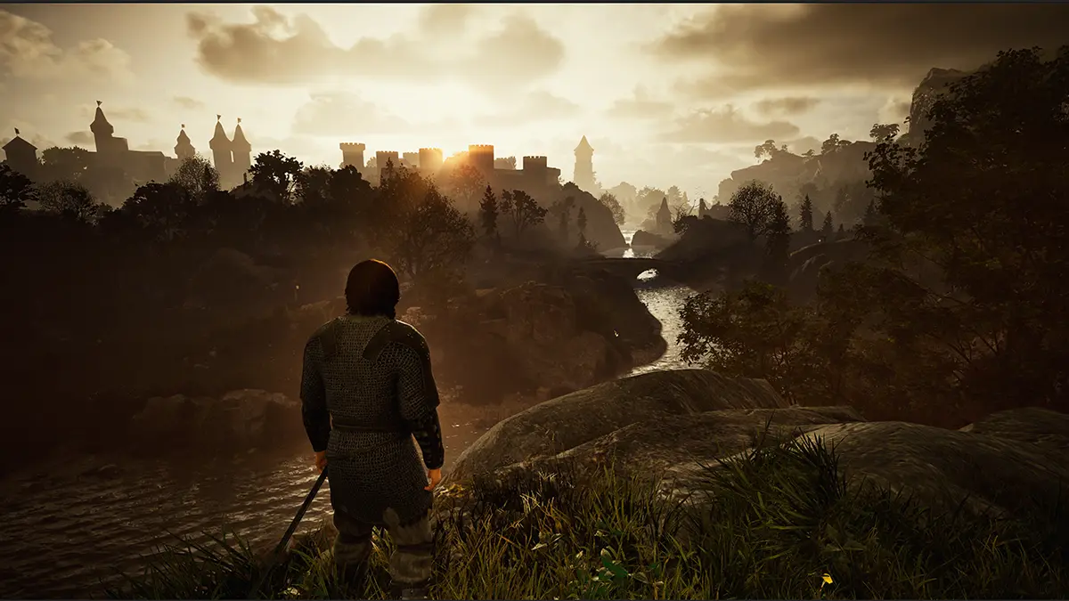 - Gameplay foca em combate tático com espadas, arcos e runas sem classes fixas.