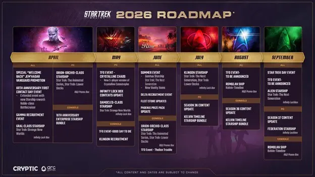 Além do evento, a Cryptic Studios revelou planos de conteúdo para os próximos meses em seus principais MMOs. Em Star Trek Online, as comemorações dos 60 anos de Star Trek incluem lançamentos temáticos ao longo do ano, com novos conteúdos baseados na linha do tempo da franquia, além de melhorias de qualidade de vida.
