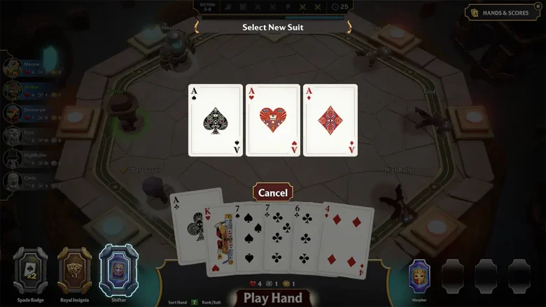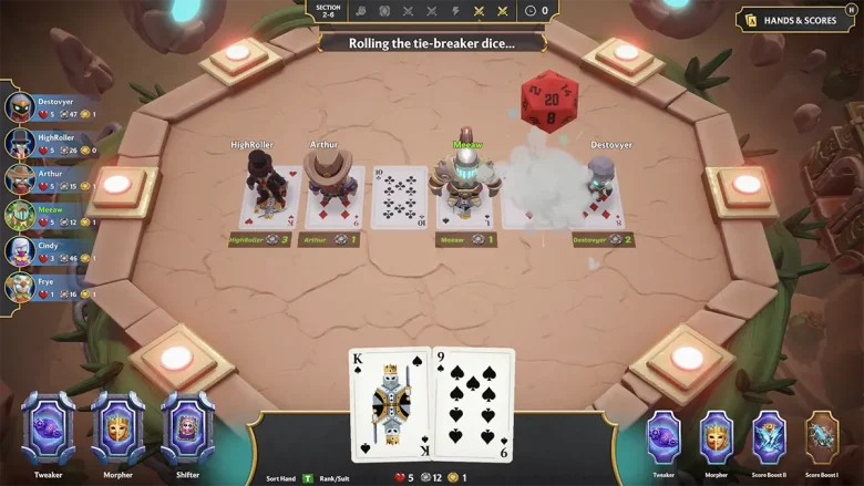 Durante as partidas, os jogadores participam de leilões secretos para adquirir cartas e montar combinações mais poderosas, ao mesmo tempo em que tentam impedir o progresso dos oponentes. Além disso, relíquias mágicas entram em cena permitindo alterar regras, modificar valores ou até mudar o naipe das cartas, criando disputas imprevisíveis em partidas multiplayer online.