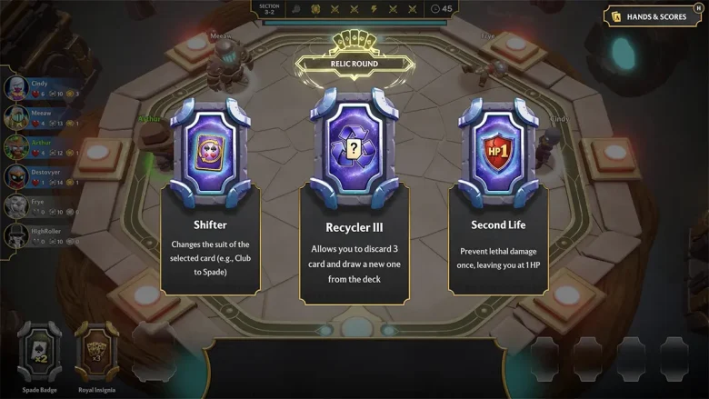 - Leilões secretos e relíquias permitem manipular regras durante o gameplay