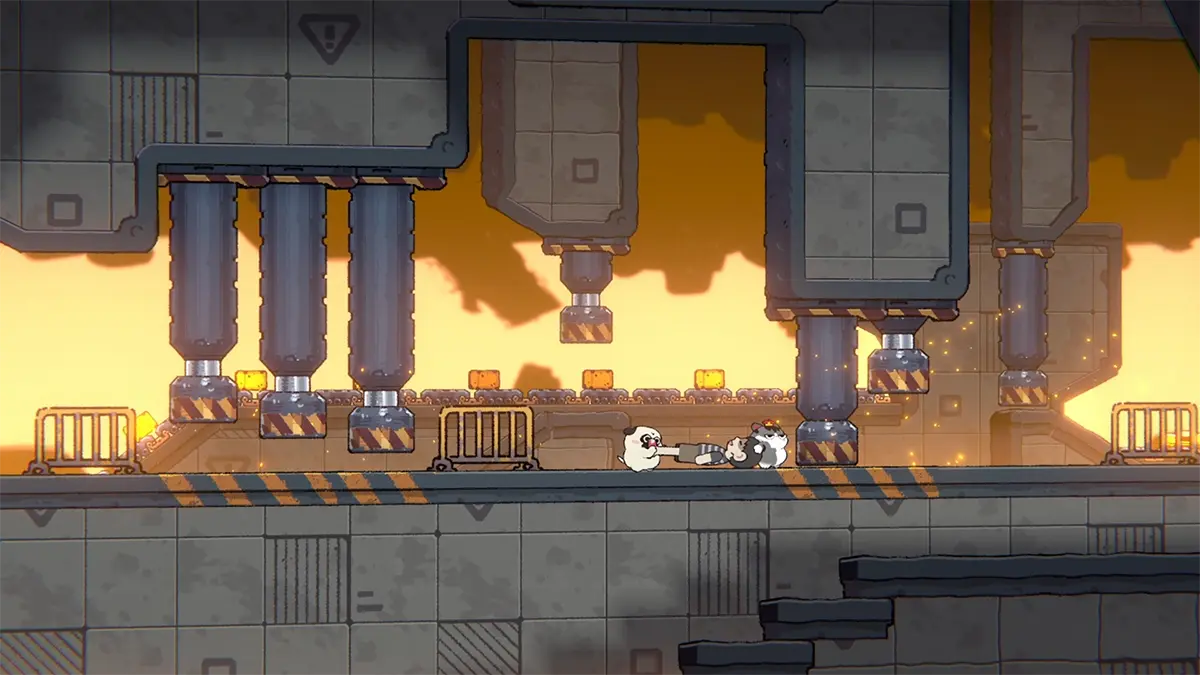 Entre os níveis, é possível visitar a Snack Shop para gastar a moeda do jogo — latas de comida coletadas — em skins estilosas e roupas ridículas para os heróis. O título foi desenvolvido inteiramente como uma experiência de coop local, desafiando a coordenação e a paciência de dois jogadores simultâneos.