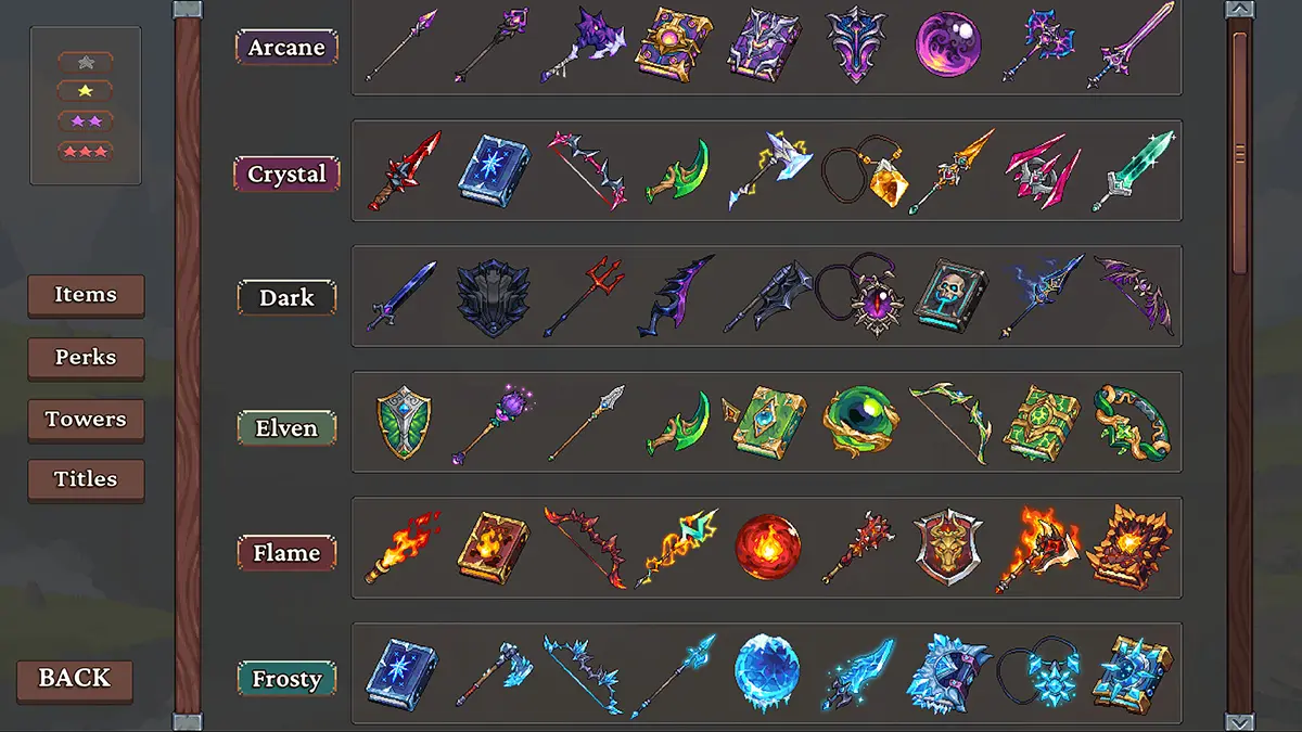 Oaken Tower é um autobattler PvP centrado na construção de torres compostas por itens. A proposta gira em torno de comprar, combinar e evoluir itens para criar builds cada vez mais poderosas.