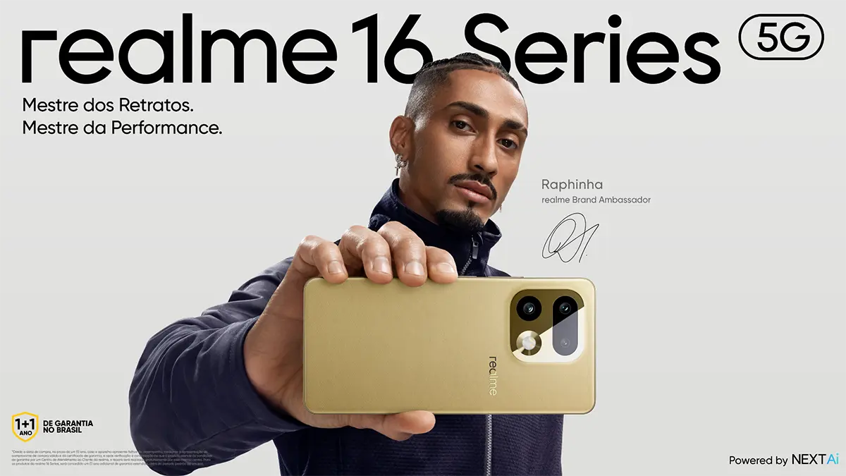 A realme confirmou o lançamento da linha realme 16 Series no mercado brasileiro para o dia 20 de maio. O anúncio oficial apresenta o jogador Raphinha, destaque do FC Barcelona e da Seleção Brasileira, como o novo embaixador da marca, consolidando uma estratégia voltada à criatividade, ao esporte e à conexão com as gerações mais jovens.